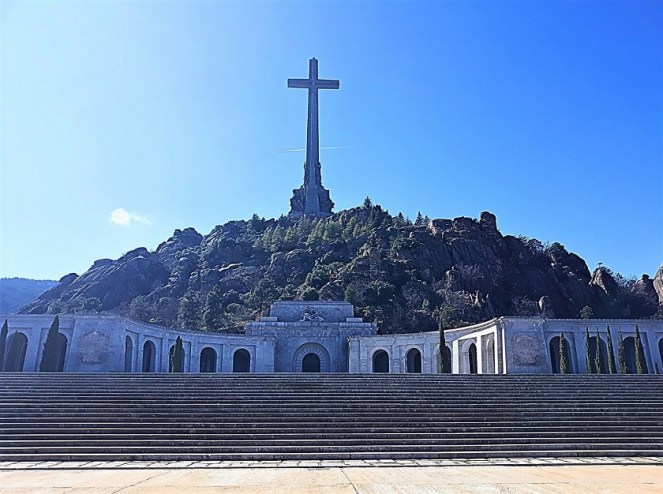 To mauzoleum upamiętniające ofiary wojny domowej w Hiszpanii, położone w paśmie Sierra de Guadarrama. Co ciekawe, jego budowę zlecił sam dyktator Francisco Franco w dniu 1 kwietnia 1940 – dokładnie w pierwszą rocznicę zakończenia wojny domowej. Mauzoleum położone jest w górach, a jego miejsce wybrał sam Franco. Prace trwały do 1959 roku. Zgodnie z kaprysem Franco mauzoleum miało być monumentalne, by uczcić skalę wojny  i nawiązywać do imperialnej przeszłości Hiszpanii Królów Katolickich.  Kompleks składa się z podziemnej bazyliki, wykutej w skale oraz z ogromnego krzyża stojącego na szczycie wzgórza Risco de Nava. Pierwotnie, zgodnie z założeniem, mauzoleum miało gromadzić jedynie ciała ofiar ze strony frankistowskiej, uważanych za męczenników i bohaterów krucjaty przeciw komunizmowi. Jednak w 1958 roku zdecydowano, w ramach oficjalnej polityki pojednania, że będą w nim chowane także ciała ofiar ze strony republikańskiej, ale tylko pod warunkiem, że były katolikami. Co ciekawe, w Dolinie do 24 października 2019 roku znajdował się także grób Francisco Franco. Przez wiele lat środowiska lewicowe dążyły do ekshumacji trumny ze szczątkami Franco i przeniesienia ich w inne miejsce. Po bataliach prawnych, przy sprzeciwie rodziny generała, 24 października 2019 roku grób dyktatora został zlikwidowany, a jego ciało pochowane na podmadryckim cmentarzu Mingorrubio. Ja odwiedziłam Dolinę w marcu 2019 roku, a więc ciało Franco tam jeszcze spoczywało. Nie powiem, miał rozmach…. Przed wejściem do bazyliki znajduje się wielki plac, z którego rozciągają się malownicze widoki na dolinę i na przedmieścia Madrytu.