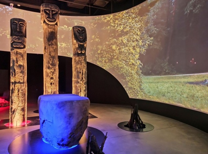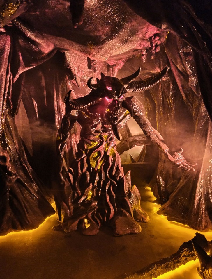 Co jeszcze zobaczymy na tej multimedialnej ścieżce? Spojrzymy w oczy przerażającej bestii kryjącej się na bagnach. Poznamy odpowiedź, skąd wzięło się źródło św. Franciszka. Zajrzymy również do… Piekła. Tak, dobrze czytacie, spotkamy się z samym Lucyferem w jego podziemnym królestwie 🙂 I szczerze przyznam, sala ta najbardziej mnie urzekła 😀 A pod koniec naszej 10-minutowy film w technologii 5D o samym regionie oraz o wspomnianych wcześniej legendach świętokrzyskich. W ostatniej sali znajdziemy kilka gablot i tablic informacyjnych na temat fauny, flory i geografii regionu. Możemy także zagrać w wirtualnym escape roomie. Ale to nie wszystkie atrakcje, na koniec zostało najlepsze 🙂