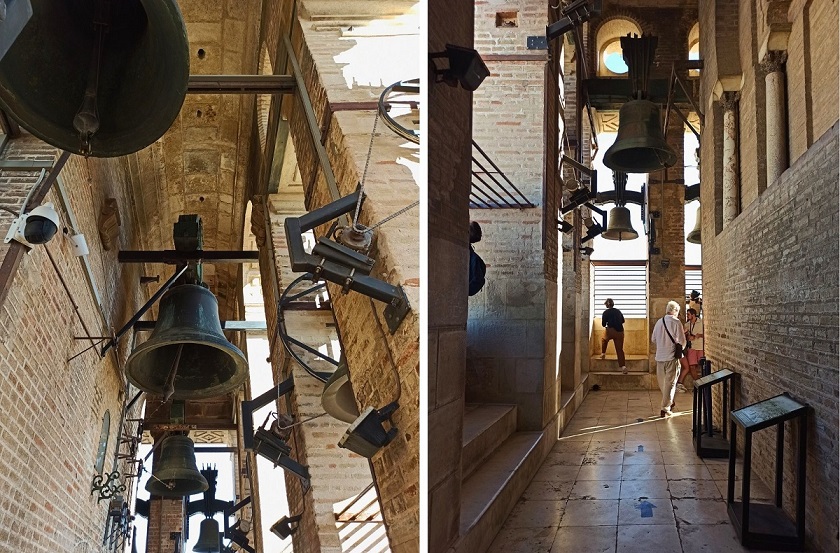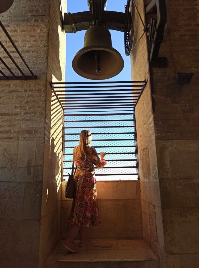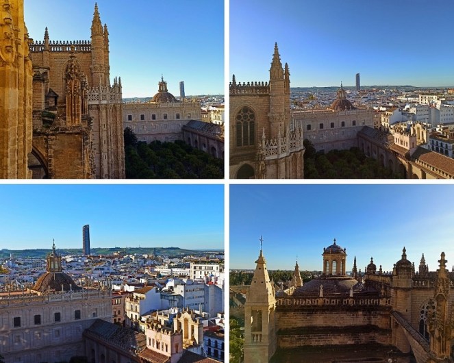 Wejście na Giraldę łączy się również z wizytą w tamtejszej Katedrze – nie da się tego rozdzielić, bo wstęp na wieżę znajduje się w środku Katedry. Na górze rozpościera się widok na samo centrum Starego Miasta, na niektóre elementy Katedry oraz kompleks pałacowy – Real Alcazar. Wizyta na tym punkcie widokowym ma jeden minus – nie można spoglądać na Giraldę 🙂
