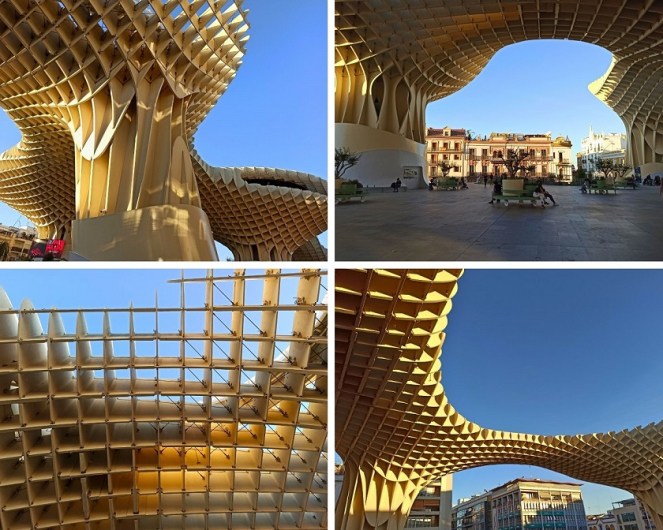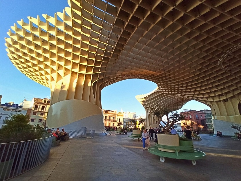 W 2011 roku nastąpiła inauguracja sewilskich grzybków. Całość liczy cztery poziomy. Wymiary tej żelazno-drewnianej budowli wynoszą 150 na 70 metrów, zaś jej wysokość to około 26 metrów. Podobno jest największą tego typu konstrukcją na świecie. Odpowiedzialny jest za nią niejaki Jürgen Mayer – niemiecki architekt. Metropol Parasol składa się z 6 połączonych ze sobą parasoli, dla których inspiracją było sklepienie Katedry w Sewilli oraz figowe drzewka figowe. W jej podziemiach mieści się muzeum archeologiczne, w którym możemy podziwiać odkryte przez archeologów ruiny rzymskich i arabskich zabudowań, w tym niesamowite mozaiki. Chodnik na szczycie wije się na różnych poziomach przez całą konstrukcję, z której roztacza się widok na miasto. Obecnie to jeden z lepszych i najbardziej obleganych punktów widokowych w Sewilli. Wieczorem grzybki mienią się wszystkimi kolorami tęczy, co daje ciekawy efekt.