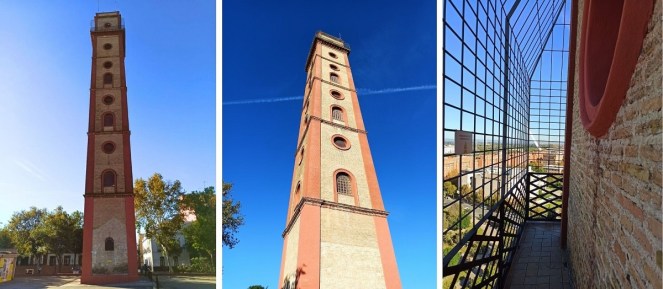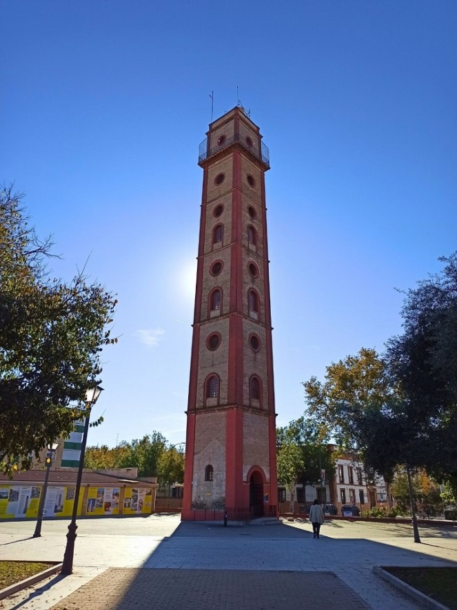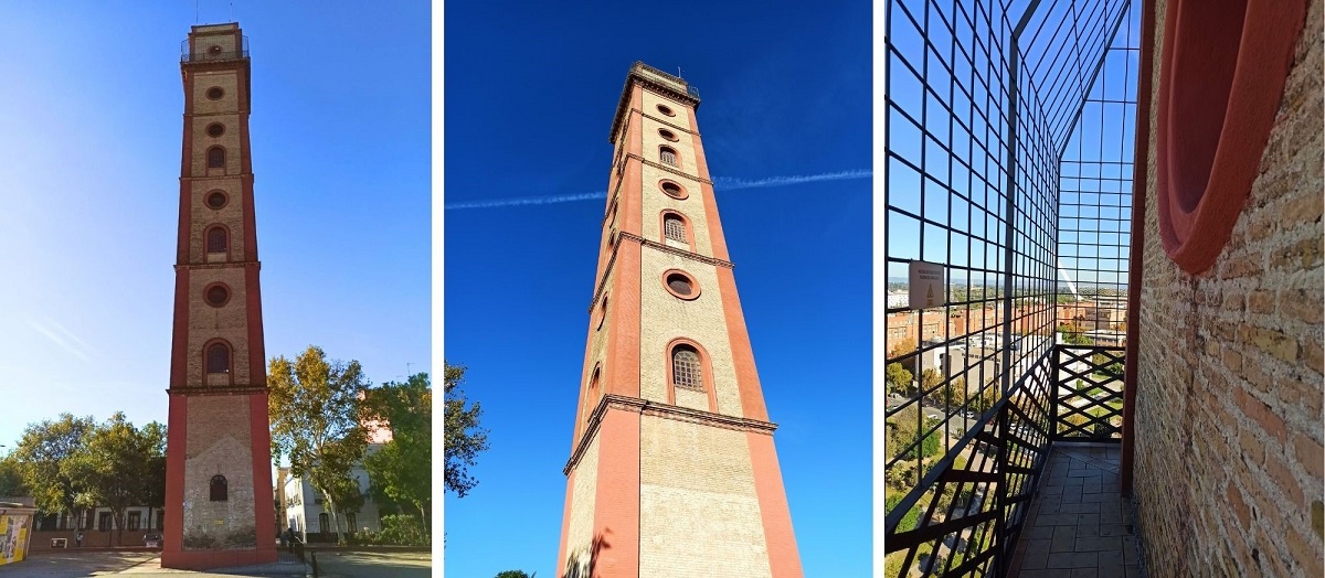 Na sam koniec zostawiłam najlepsze. Szczerze przyznam, że o tym miejscu dowiedziałam się przypadkowo, przy okazji… wizyty w Kadyksie. Wcześniej nie miałam pojęcia o istnieniu tego punktu widokowego, nawet żaden przewodnik o nim nie wspominał. Jak się cieszę, że jednak trafiłam na tę wieżę! Co prawda znajduje się nieco dalej od tych wyżej wspomnianych, ale z całą pewnością warto się przespacerować na północ miasta, bo rozpościera się z niej – według mnie – najlepszy widok na Sewillę. Wieża sięga 45 m wysokości, czyli prawie połowę wysokości Giraldy. Warto wiedzieć, że na szczyt wjeżdża się windą, a nie wchodzi po schodach 🙂