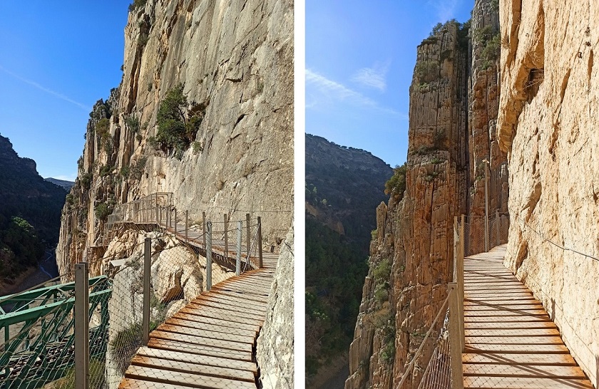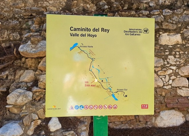 Trasa jest jednokierunkowa i fizycznie łatwa. Nie ma na niej żadnych przewyższeń, po których dostaniemy palpitacji serca. Cały czas idzie się albo kładkami, albo płaską powierzchnią ziemi. Tutaj problemem może być psychika i nasza bujna wyobraźnia, ale o tym później. Wejście na Ścieżkę Króla znajduje się w miejscowości Ardales (wejście północne) i kończy się w El Chorro (wejście południowe). Łączna długość wynosi około 8 km, jednak „właściwa” trasa zawieszona nad wąwozem liczy ok. 5 km i można ją przejść na spokojnie w 2-3 godziny. Ja szłam emeryckim, spacerowym tempem (albo mi się tak wydawało), co chwilę zatrzymując się i robiąc zdjęcia, a zajęło mi to prawie 2 godziny.
