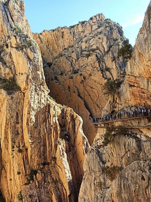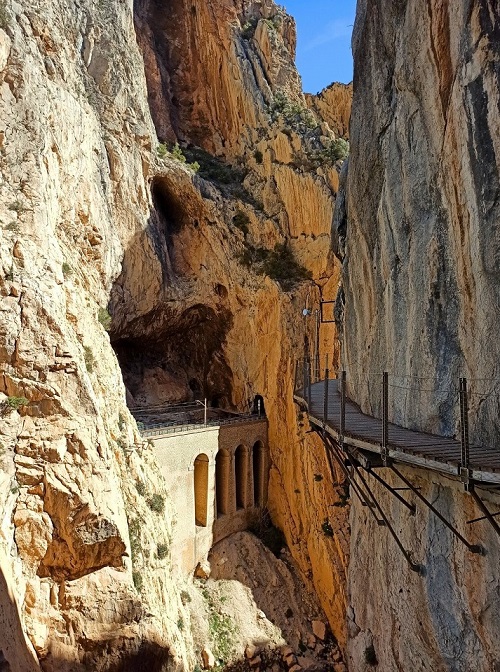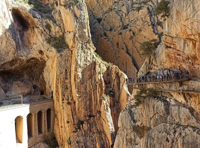 Caminito del Rey, czyli Szlak Króla to piesza trasa ciągnąca się wzdłuż stromych ścian wapiennego wąwozu w parku narodowym Desfiladero de los Gaitanes, w hiszpańskiej prowincji Málaga. Dnem wąwozu płynie rzeka Guadalhorce, zaś obie ściany wąwozu stanowią pionowe urwiska skalne osiągające wysokość ponad 100 metrów. Ścieżka Króla prowadzi w większości prawą ścianą wąwozu (prawy brzeg rzeki), po betonowych platformach przytwierdzonych stalowymi wysięgnikami do skały, często na wysokości kilkudziesięciu metrów ponad dnem wąwozu.  To z pewnością jeden z najsłynniejszych szlaków w Hiszpanii, a może i na świecie. Zdecydowanie jeden z najbardziej spektakularnych pieszych tras, z oszałamiającymi widokami. Przejście Caminito del Rey to niezwykłe doświadczenie, które polecam każdemu śmiałkowi.