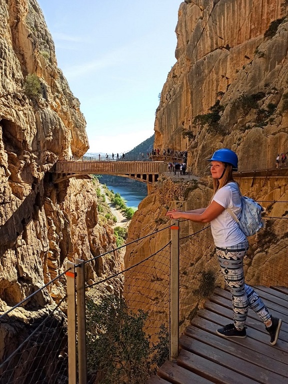 Jak wspomniałam wcześniej, wejście na szlak wymaga przełamania się, trochę odwagi i wyjścia ze strefy komfortu. Jednak nic na siłę – jeśli ktoś ma silny lęk wysokości i klaustrofobię albo boryka się z innymi dolegliwościami, jak np. zaburzenia błędnika, nie powinien pojawiać się na Caminito del Rey. Ja posiadam i lęk wysokości, i klaustrofobię, ale weszłam na szlak i jestem przeszczęśliwa, że to zrobiłam! To była jedna z pozycji na mojej bucket list. Od jakiegoś czasu czaję się, żeby nią przejść, ale ostatnio nie było mi po drodze do Andaluzji. I w końcu to zrobiłam. Nie po to, żeby sobie (albo tym bardziej komuś) udowodnić coś na siłę. Mam takie osobiste postanowienie, że będę wychodzić ze strefy komfortu i zwalczać własne lęki, step by step. Caminito del Rey było jednym z nich 🙂
