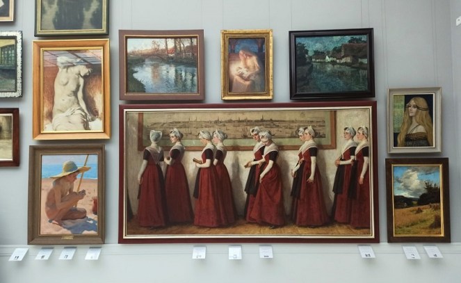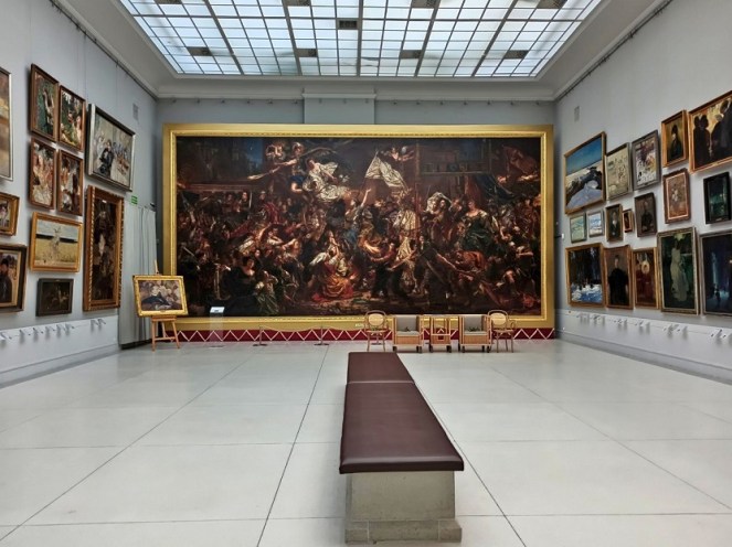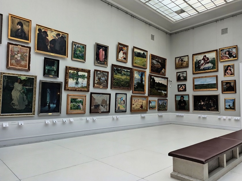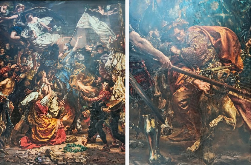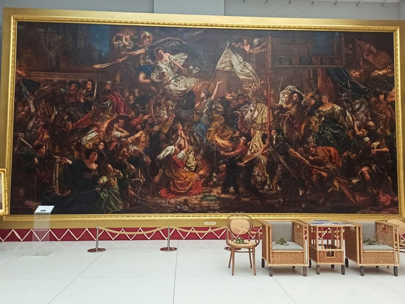 Nieco na uboczu i w osobnym budynku, po lewej stronie Pałacu, znajduje się galeria obrazów. Wybudowana została w 1910 roku i zawiera imponujące zbiory gromadzone przez czterdzieści lat przez Edwarda Raczyńskiego i zgodnie z jego wolą udostępniona dla zwiedzających prace ocalałe z pierwotnego zbioru. Wyeksponowanych jest tu około 300 obrazów, a pośród nich prawdziwa perełka: wielkie płótno Jana Matejki „Dziewica Orleańska”, a także zespół dzieł Jacka Malczewskiego czy Stanisława Wyspiańskiego oraz innych wybitnych artystów polskich na czele, które zestawiono z dziełami twórców zagranicznych. Kolekcja robi wrażenie, ale mnie zahipnotyzował obraz Matejki – mogłam gapić się na niego bez końca.