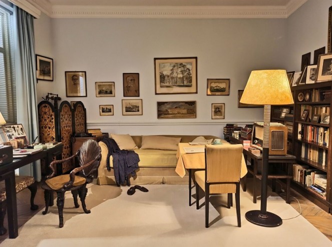 Znajdujący się w północnym skrzydle Pałacu gabinet jest wierną rekonstrukcją pokoju z londyńskiego mieszkania Edwarda Raczyńskiego, ostatniego z rodu, Prezydenta RP na uchodźstwie. W Londynie spędził 26 lat swego życia. Właśnie tutaj, w gabinecie, przyjmował oficjalnych gości, przyjaciół, rodzinę. Miejsce to zapisało się nie tylko w pamięci wielu osób. Tutaj tworzyła się także historia Polski. Gabinet wypełniony jest pamiątkami: starymi meblami, fotografiami rodzinnymi, ocalałymi portretami antenatów. Są tu przedmioty zwyczajne i niezwyczajne równocześnie, jak choćby ukryta za zabytkowym, pochodzącym z pałacu w Rogalinie parawanem, londyńska księga adresowa z wpisanym odręcznie numerem telefonu Winstona Churchilla, czy zdjęcie z podpisania polsko-brytyjskiego traktatu o wzajemnej pomocy z autografami uczestników tego wydarzenia. Do gabinetu prowadzi nas półokrągły hol z galerią licznych obrazów.