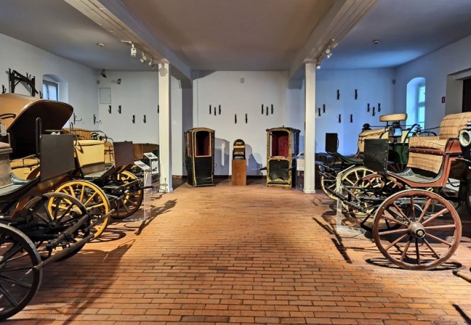 Do ważnych elementów rezydencji Raczyńskich w Rogalinie należy powozownia i stajnia. Pierwotnie drewniane, a od 1801r. murowane budynki, wzniesione zostały w 1776 r., czyli tuż po zakończeniu prac przy samym pałacu. Specjalnie dobierane konie, ozdobne powozy oraz obsługa w odpowiednich strojach, stanowiły bowiem ważną część ceremoniału dworskiego i określały pozycję społeczną i zamożność właściciela. W środku znajduje się imponująca kolekcja rożnego rodzaju powozów. Jedynym pojazdem z przedwojennych zasobów, który można oglądać w udostępnianej od 1987 r. powozowni jest poddana ostatnio konserwacji kareta coupe. Pozostałe obiekty, pochodzące głównie z wytwórni wielkopolskich, są typowym zestawem pojazdów konnych używanych w ziemiańskiej rezydencji na przełomie XIX i XX w. Są wśród nich odkryte powozy gospodarczo-administracyjne oraz sportowo-spacerowe przeznaczone do zaprzęgu dżentelmeńskiego, czyli powożone przez właścicieli oraz pojazdy reprezentacyjne i wyjazdowe. W nowej ekspozycji powozowni odnaleźć też można sanie wyjazdowe, które w odróżnieniu od sań podróżnych były otwarte, jedynie z futrzanym przykryciem dla pasażerów. Saneczki dziecięce przeznaczone były z kolei do zabawy z psim zaprzęgiem.
