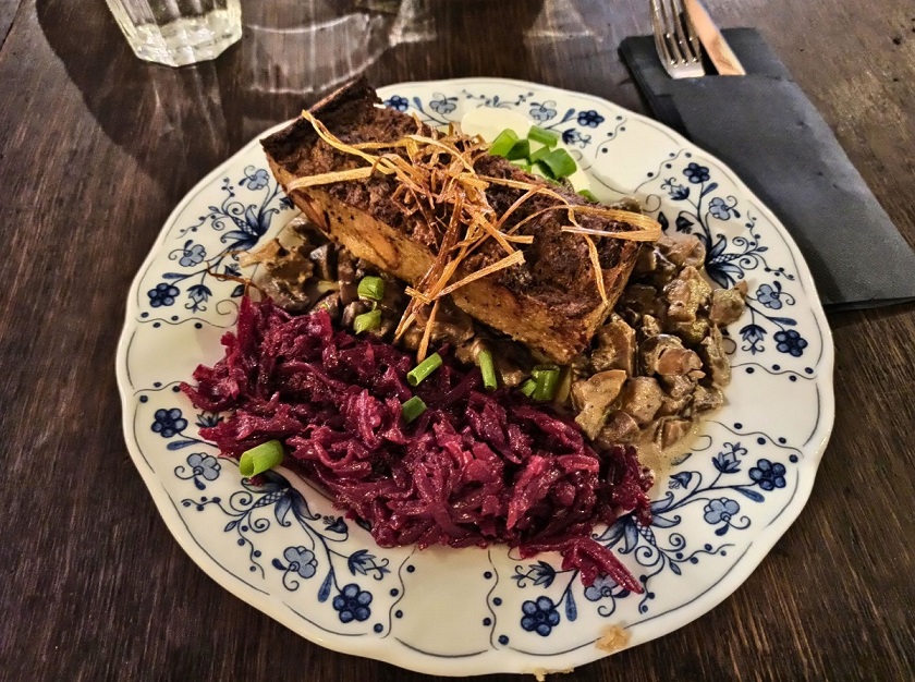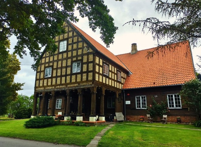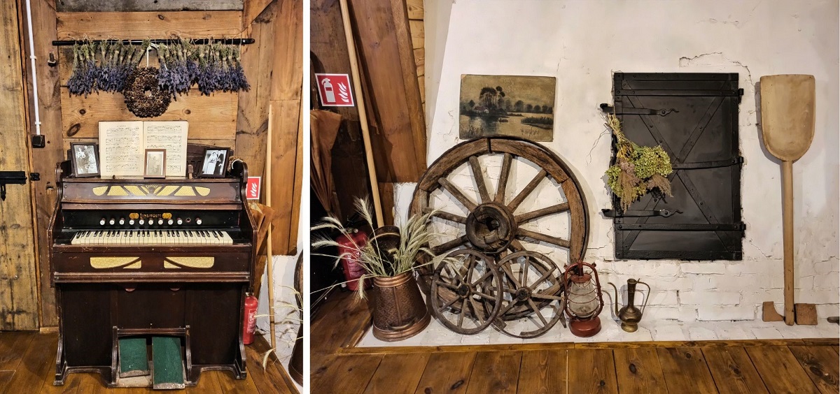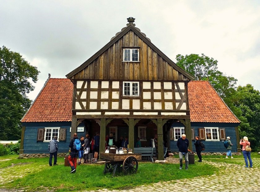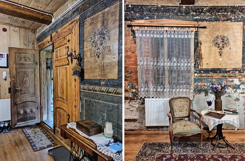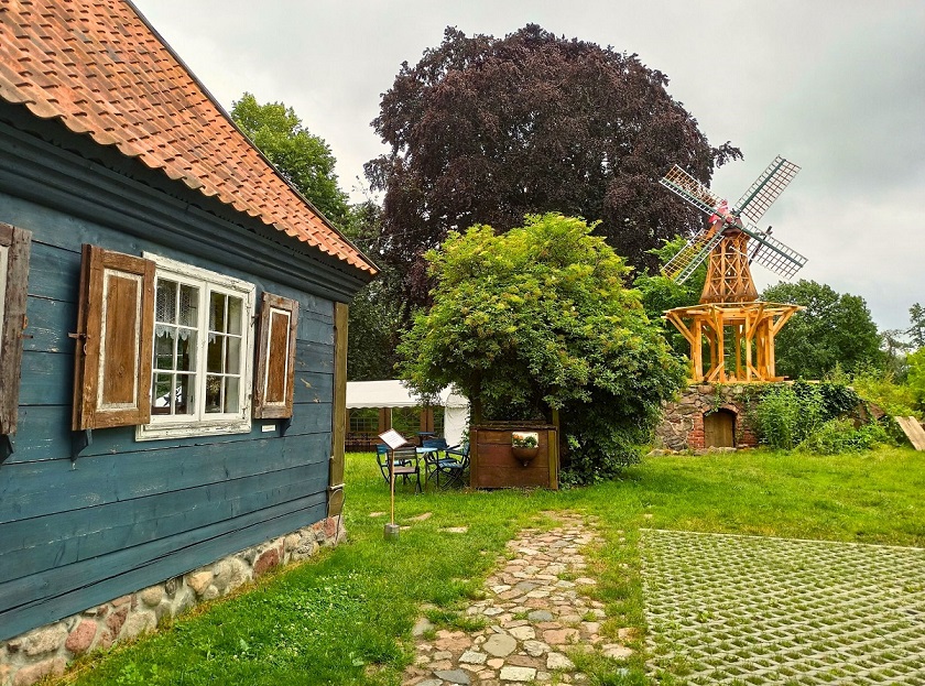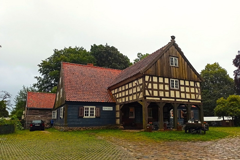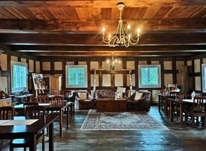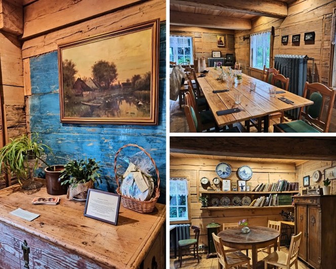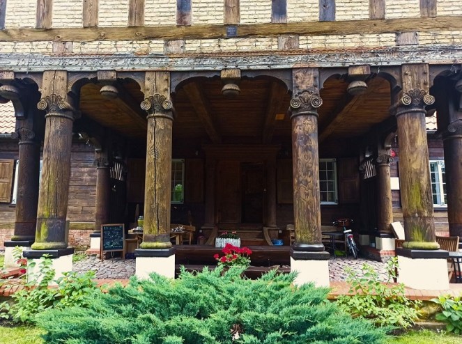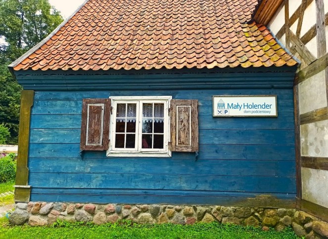Gospoda Mały Holender to jedna z najpopularniejszych regionalnych restauracji na Żuławach. Mieści się w wyremontowanym domu podcieniowym, co bez wątpienia nadaje typowo żuławskiego klimatu. Zachowano w nim układ pomieszczeń oraz wyeksponowano ocalałe elementy np. fragment drewnianego malowanego sufitu. Restauracja serwuje przede wszystkim znakomite dania lokalnej kuchni bazujące na swojskich produktach. W menu znajdziemy m.in. klopsy królewieckie, jesiotra, gęś czy zupę klopsową mennonickiej rodziny Andres, osadnicze pierogi (np. z wędzonym śledziem) i babkę ziemniaczaną, a także autorskie inspiracje regionem jak deser żuławskich kolejarzy. Ja miałam okazję spróbować słynnej zupy rakowej oraz babkę ziemniaczaną żuławskich osadników, czyli babka ziemniaczana z łopatką wieprzową i boczkiem, sosem z pieczarkami, kwaśną śmietaną i buraczkami marynowanymi. Niebo w gębie 🙂 Dodatkowo na terenie gospody możemy również zakupić lokalne produkty takie jak sery (przede wszystkim legendarny werderkäse), powidła i konfitury, kiszone ogórki czy miody.