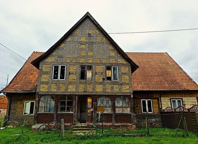 Niestety nie wszystkie domy podcieniowe jak te w Żelichowie czy Marynowach mają tyle szczęścia. Akurat te, które odwiedziłam zostały gruntownie wyremontowane i odpowiednio zaadaptowane. Jeszcze kilka innych tego typu budowli zostało odpowiednio zakonserwowane (np. w Żuławkach czy Nowej Kościelnicy), ale tam niestety nie dotarłam. Większość domów podcieniowych niszczeje i popada w ruinę. Dlaczego takie unikatowe zabytki spotyka taki los? Oczywiście chodzi o pieniądze i sprawy spadkowe. Niektóre z domów zajmowane były przez 2-3 rodziny, ale te duże były niemal jak miejskie kamienice, w których potrafiło mieszkać 11 rodzin! Po likwidacji PGR-ów, zostawali w tych domach jako lokatorzy komunalni i nikt nie myślał o remontach. Czasami te domy nadal mają po kilku właścicieli, bywa, że od lat nieobecnych, z bardzo złożoną strukturą właścicielską. Gdy dom kupował obecny właściciel mieszkali tam spadkobiercy powojennych osiedleńców, ale też w części był to budynek gminny. Scalenie własności bywa w takich przypadkach bardzo czasochłonnym i skomplikowanym procesem. Duża część mieszkańców tych domów to starsi ludzie, nie mają sił i środków na skomplikowane remonty. A potem spadkobiercy dostają nieruchomość, w której wartością jest nie zniszczony dom, a działka, na której są domy. Efektem tego jest długoletnia batalia sądowa i/lub kosztowny remont, w związku z czym domy stopniowo popadają w ruinę. A szkoda, bo stanowią piękne dziedzictwo historyczne tego regionu i szkoda, żeby zniknęły z mapy Żuław.