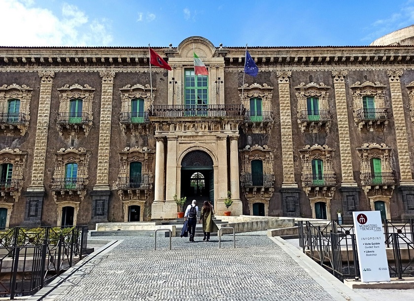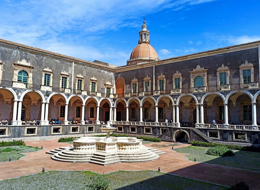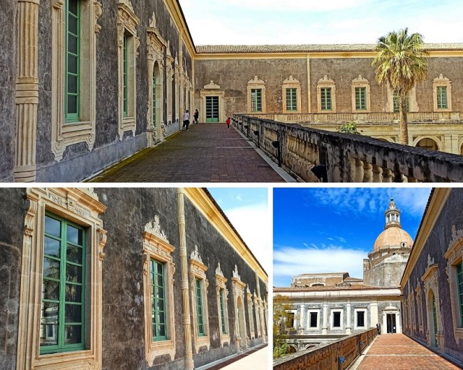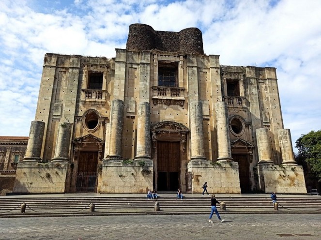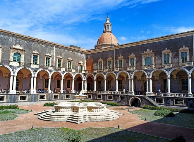 To z pewnością jedna z najważniejszych atrakcji Katanii. To kolejny klejnot późnego baroku sycylijskiego, który w 2002 roku został wpisany na Listę Światowego Dziedzictwa UNESCO. Jest to drugi co do wielkości klasztor benedyktynów w Europie. Jego początki sięgają drugiej połowy XVI wieku. Powstał on na wzniesieniu, na którym dawno temu znajdował się grecki akropol. Jak pozostałe atrakcje Katanii, również klasztor ucierpiał w wyniku trzęsienia ziemi w 1693 roku. Aktualnie mieści się tam Wydziału Nauk Humanistycznych Uniwersytetu w Katanii.