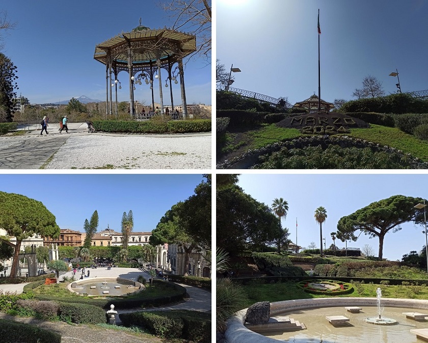 Po całodniowym spacerze warto przyjść do tego parku i odsapnąć sobie. Przy samym wejściu do parku, zauważymy charakterystyczną konstrukcję pełniącą funkcję zegara. Ogrody położone są na niewielkim wzniesieniu, dzięki temu mamy niezły widok na Via Etneę i co najważniejsze – na samą Etnę. Sam park jest niczego sobie, przyjemny i zadbany, z wielką altaną na środku. Warto usiąść sobie na ławeczce i rokoszować się widokiem kotłującego się wulkanu.
