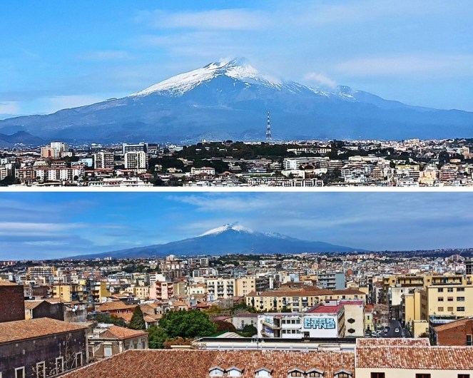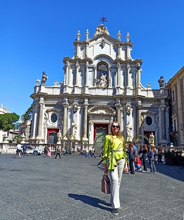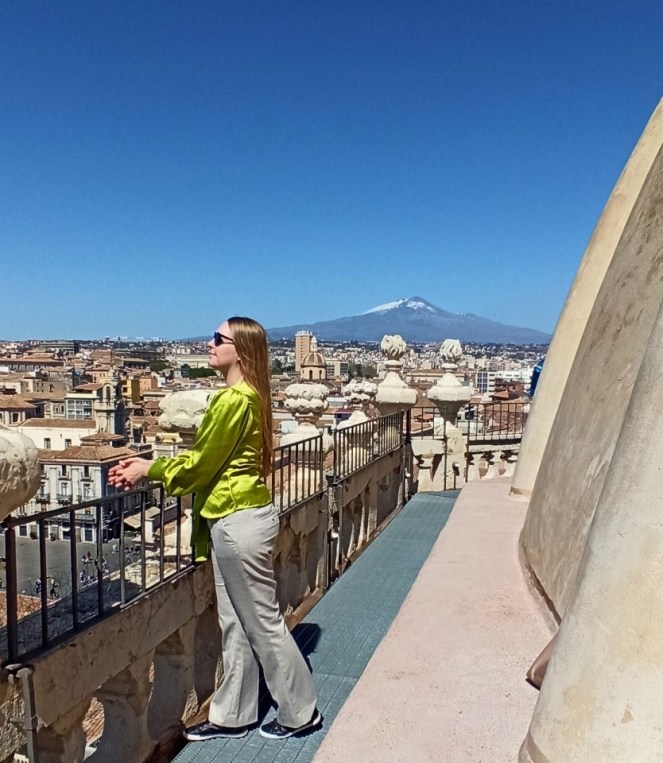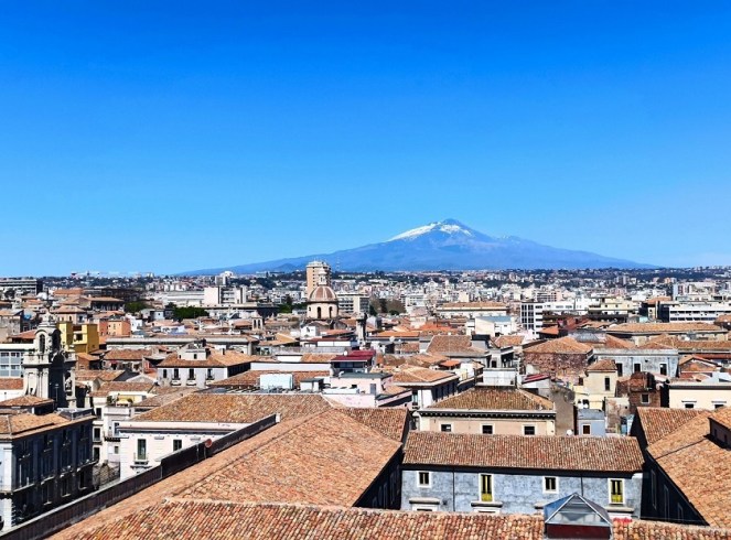 Katania to drugie największe miasto na Sycylii i stanowi główny ośrodek przemysłowy w tej części Włoch. Miasto położone u podnóża Etny jest z nią nierozerwalnie związane. Życie w cieniu aktywnego wulkanu nie należy do najłatwiejszych. Etna jest jednym z najbardziej aktywnych wulkanów na świecie. Niemal cały czas wydobywają się z niego gazy i para, a ostatnia groźniejsza erupcja miała miejsce w grudniu 2023. Trochę tak, jakby funkcjonować na tykającej bombie. Wiedzą o tym doskonale mieszkańcy Katanii i innych okolicznych miasteczek. Nie jest jednak tak, że ludzie nic innego nie robią, tylko odliczają godziny do erupcji, czekając na totalną zagładę 🙂 Ich życie płynie sobie w rytmie włoskiej „la dolce vita”, prawie tak samo, jak prędkość ewentualnej lawy. Przewodnik wycieczki na Etnę powiedział, że nawet jeśli nastąpi erupcja wulkanu, to nikt nie ucieka w popłochu, łapiąc na szybko najcenniejsze rzeczy. Wiedząc, że wulkan znowu się obudził, mieszkańcy najpierw na spokojnie zjedzą obiad, a potem ewentualnie spakują jakieś manatki i wolnym krokiem zaczną się oddalać. Nawet jeśli nastąpi erupcja, to albo nie dotrze do żadnego miasteczka, albo zrobi to w żółwim tempie, bez pospiechu. Przewodnik stwierdził też, że Etna ewidentnie jest prawdziwą Włoszką 🙂