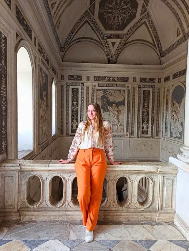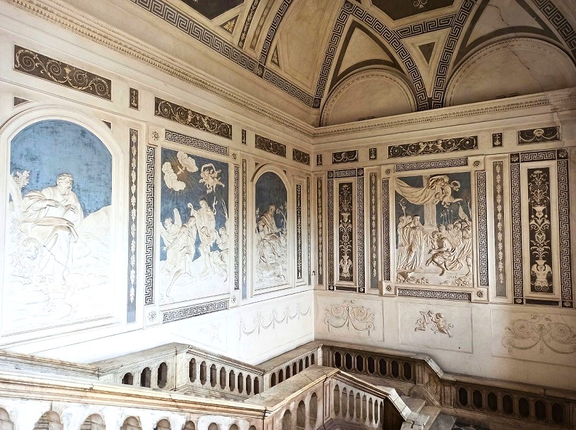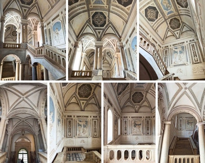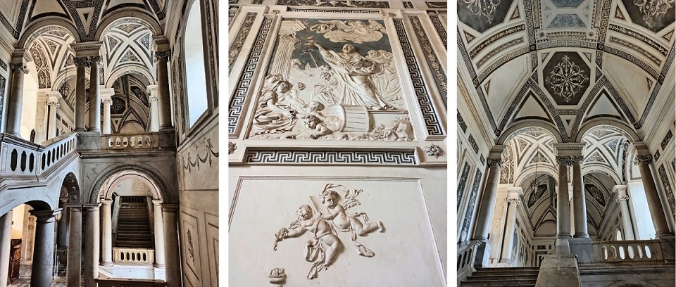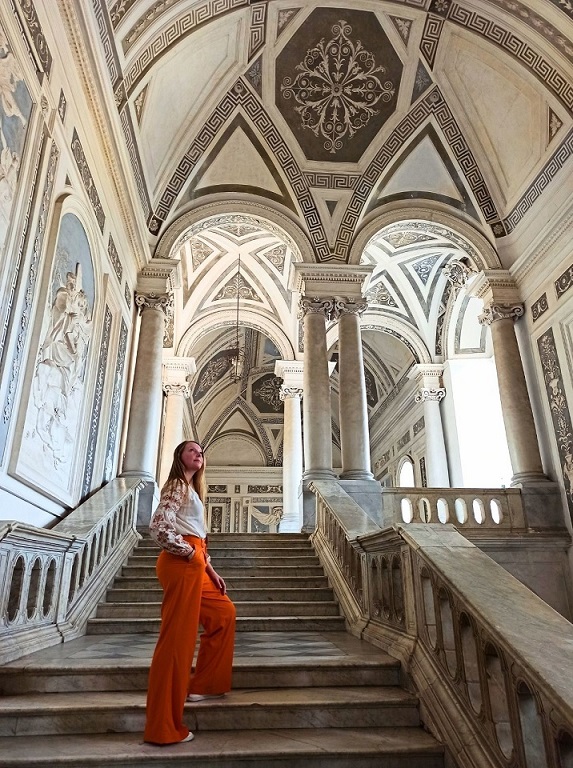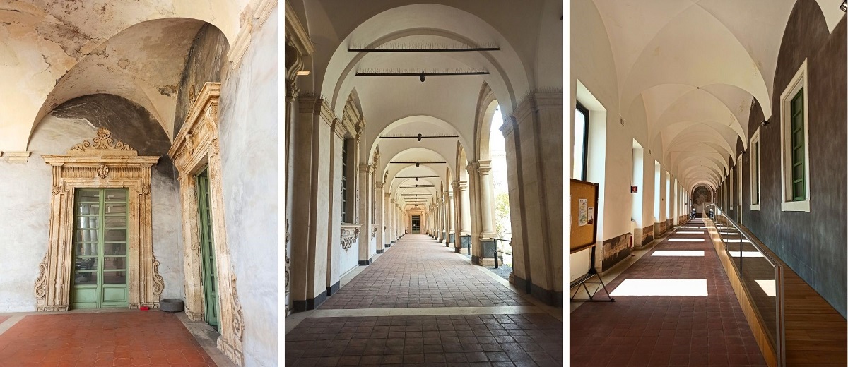 Ogólnie wejście na teren Klasztoru jest darmowy i można przechadzać się m.in. po korytarzach, przepięknej klatce schodowej oraz balkonie. Wspomniana klatka schodowa robi niesamowite wrażenie i w moim odczuciu to najpiękniejsza część Klasztoru. Spacerując po długich korytarzach mijamy kolejne cele zakonników, które dzisiaj pełnią funkcję sekretariatu, czy sali, gdzie prowadzone są zajęcia. A wszędzie wokół krążą studenci. Jednak nie wszystkie pomieszczenia są ogólnodostępne. O godzinie 13:00 każdego dnia odbywa się wycieczka z przewodnikiem (koszt: 10 euro) angielskojęzycznym (w innych godzinach tylko po włosku) i dzięki temu możemy wejść do niedostępnych pomieszczeń. Wraz z przewodnikiem wejdziemy m.in. do historycznych pomieszczeń kuchni, biblioteki, rzymskiego domu w piwnicach czy ściany zastygłej lawy znajdujące się na tyłach budynku. Dodatkowo przewodnik wnikliwie, ale i ciekawie opowiada o historii tego miejsca. W moim odczuciu warto zainwestować te 10 euro, bo mamy dostęp do obszarów, o istnieniu których byśmy nie wiedzieli. Taka wycieczka trwa nieco ponad godzinę.