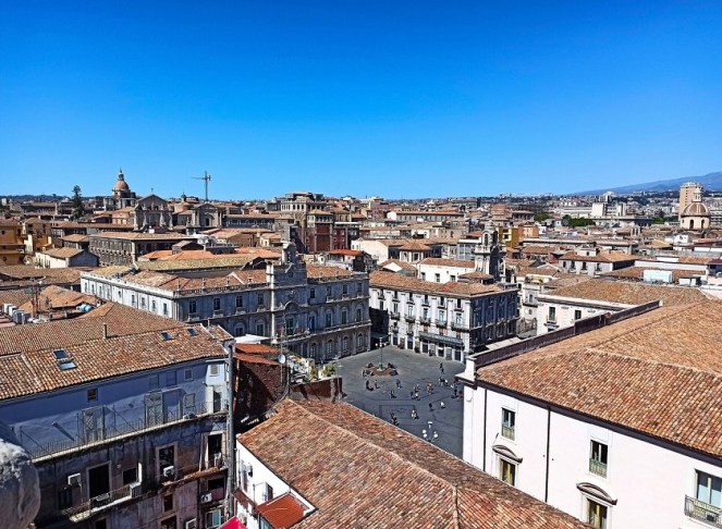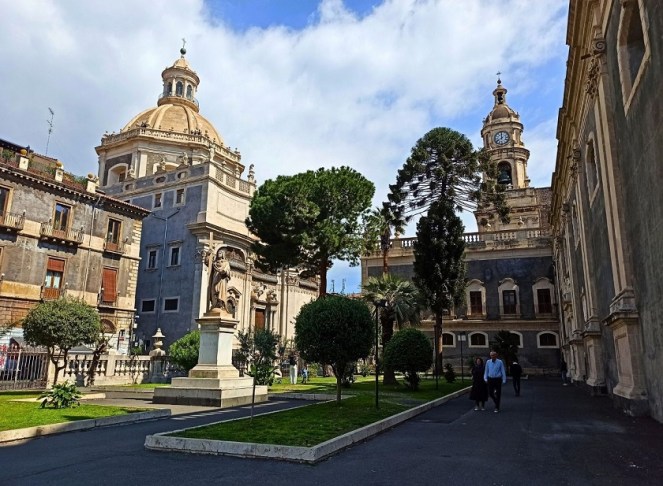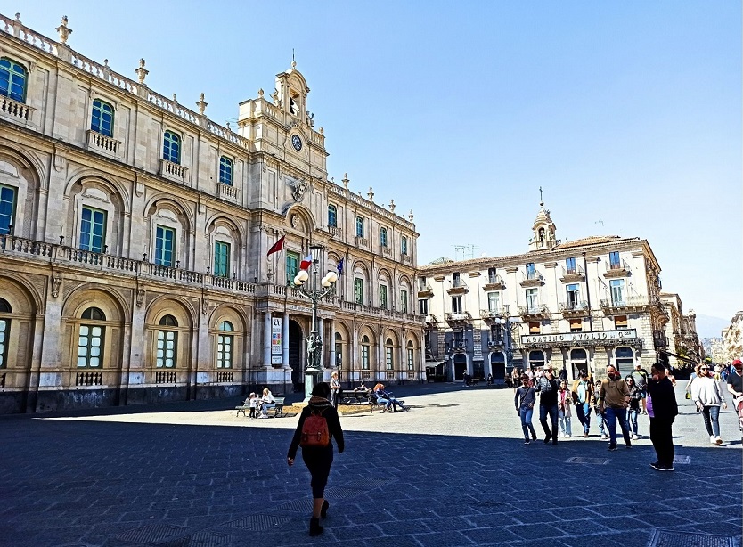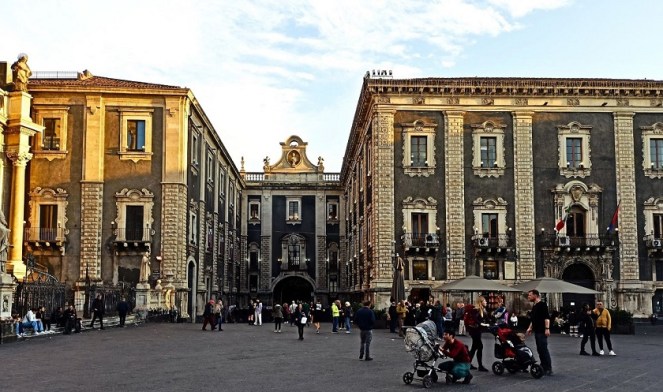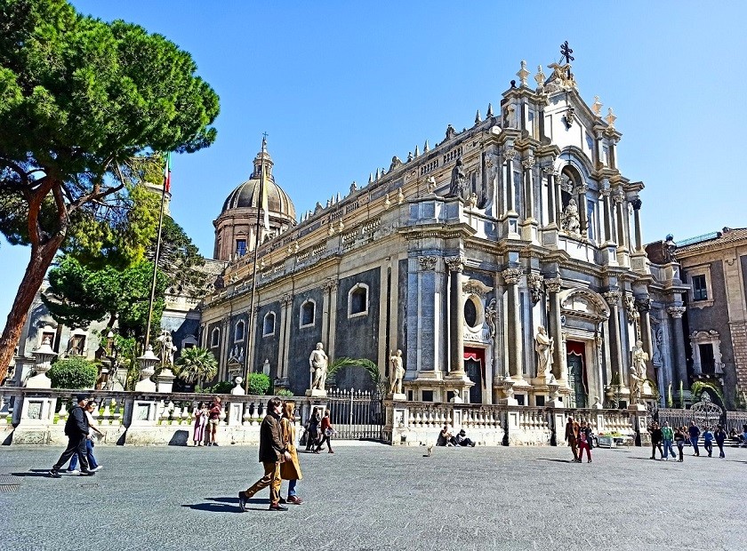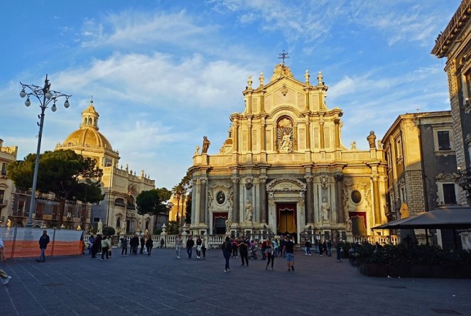 To bez wątpienia to najważniejszy punkt w całym mieście. To miejsce tętni życiem nie tylko za dnia, ale również w nocy. Znajduje się tutaj wiele barokowych atrakcji miasta, jak Katedra św. Agaty, pałace, szumiące fontanny a także mnóstwo drogich restauracji. Znajduje się na nim mnóstwo sycylijskich arcydzieł barokowych, a sam plac jest głównym miejscem spotkań mieszkańców i turystów. Co ciekawe, plac Duomo pokryty jest wulkanicznym chodnikiem z zastygłej lawy Etny.