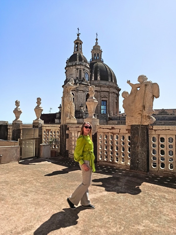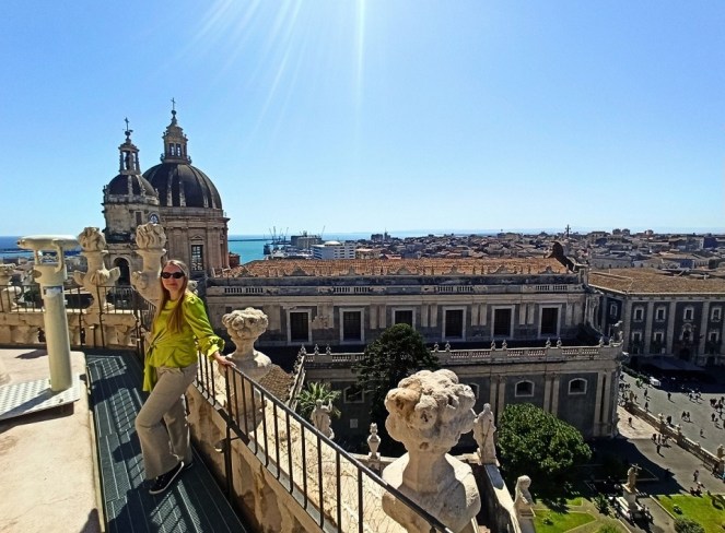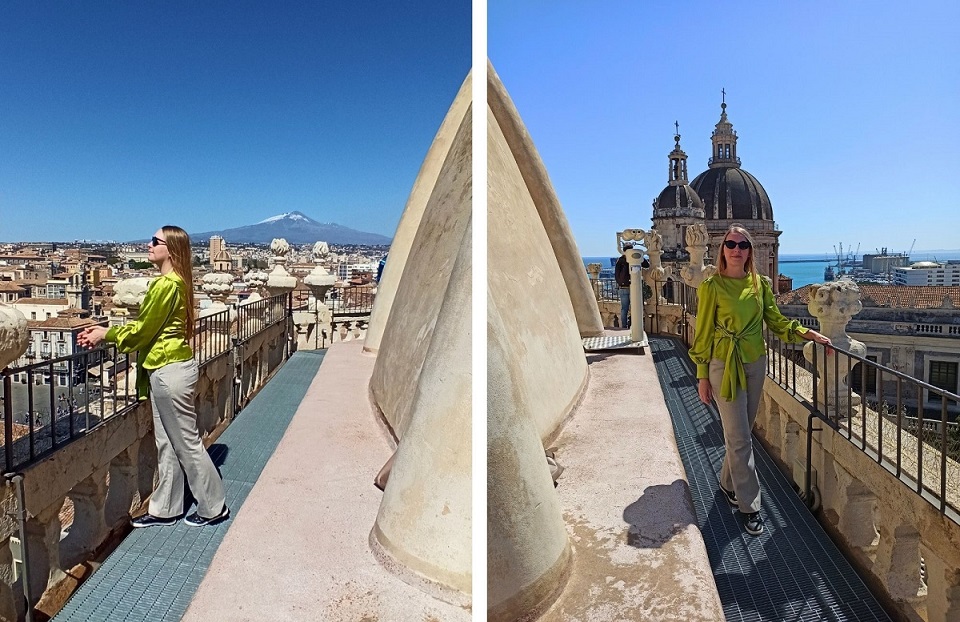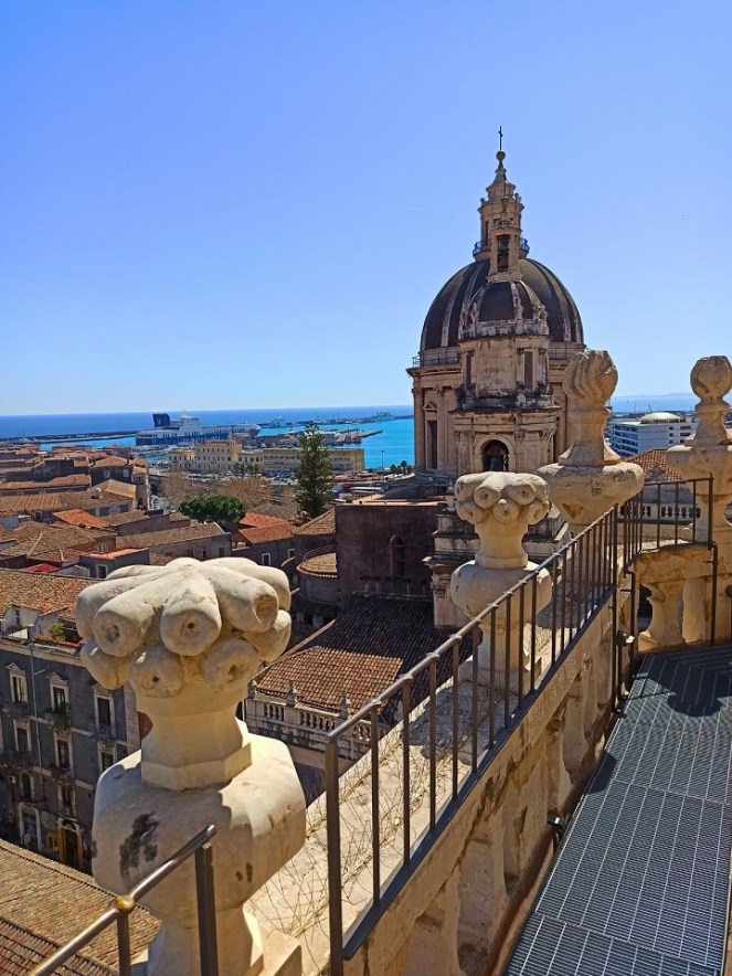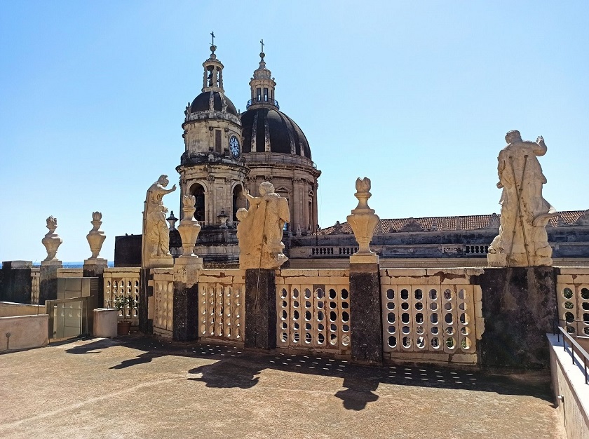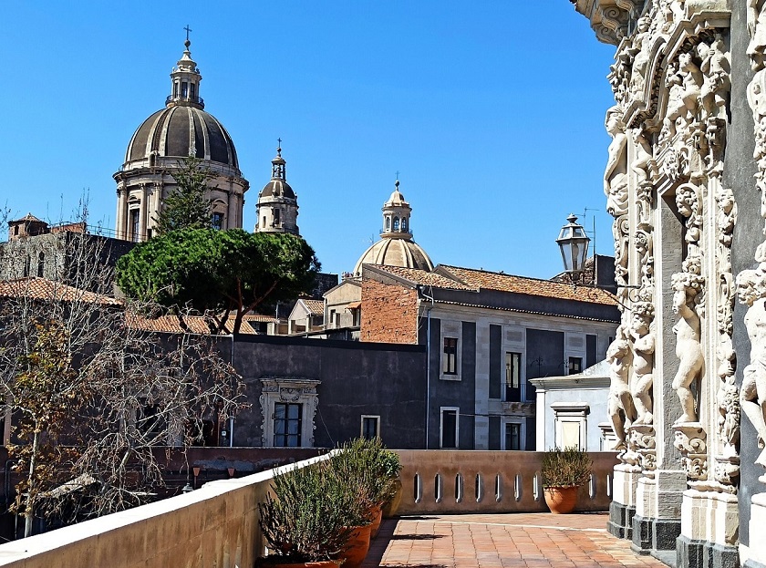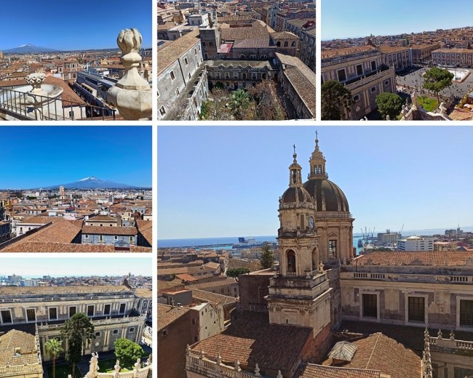 Nieopodal katedry, w północno-wschodnim rogu placu katedralnego, znajduje się opactwo pod wezwaniem św. Agaty. To także budowla z okresu baroku, czyli z XVIII wieku. Chociaż samo wnętrze kościoła nie urzeka, to wejdziemy tam na kopułę i dach, z którego rozpościera się panoramiczny widok na miasto. Z tarasów widokowych można zobaczyć nie tylko fantastyczny widok na Katanię, ale i na Etnę. Tarasy opactwa stanowią jedną z najlepszych atrakcji w Katanii. Z kopuły kościoła Badia di Sant’Agata widać wyraźnie Etnę, ciągnące się po horyzont miasto, charakterystyczne kopuły Bazyliki św. Agaty, lazurowe wody Morza Jońskiego z portem oraz centrum miasta z najpiękniejszymi zabytkami. Samo wejście do kościoła jest bezpłatne, ale na taras widokowy wstęp kosztuje 5 euro.