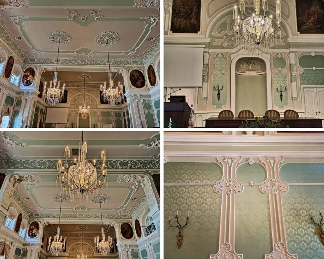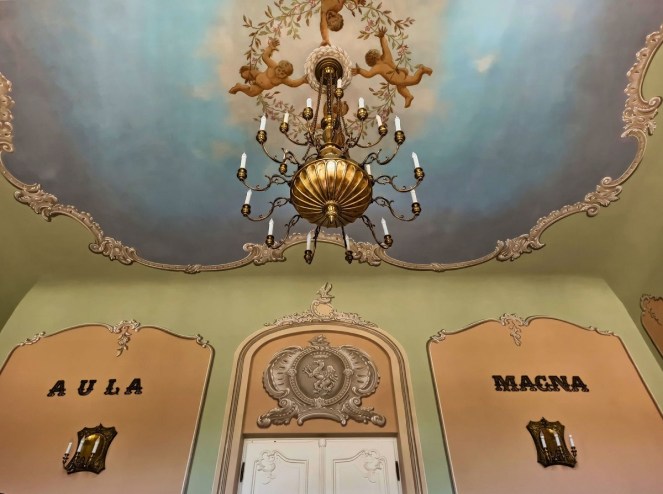 Największe wrażenie bez wątpienia robi Aula Magna, która powstała z połączenia dawnej sali balowej i jadalni. Kolorystyka auli utrzymana jest w bardziej pastelowych tonacjach niż przed liftingiem. Odrestaurowano też wiszące na ścianach obrazy, odmalowano ściany, położono nowe złocenia i wyremontowano parkiet. Z aulą sąsiaduje kaplicę, w której modliła się niegdyś Izabela Branicka. Po jej rekonstrukcji odtworzono ołtarz, latarnię i kopułę kaplicy, ozdabiając je wzorowanymi na siedemnastowiecznych sztukateriami. Na ołtarzu stoi współczesna kopia figury Czarnej Madonny z hiszpańskiego klasztoru Montserrat. Na uwagę zasługuje również klatka schodowa z rzeźbami dwóch atlantów podpierających schody.
