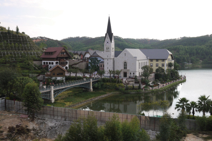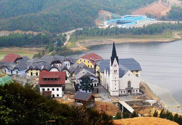A konkretniej z Chinami. Poza tym, że uliczki zostały opanowane przez Azjatów, to Hallstatt i Chiny łączy coś więcej. Okazuje się, że Chińczykom tak bardzo przypodobało się to austriackie miasteczko, że postanowili wybudować dokładnie takie samo u siebie. Chińskie Hallstatt powstało na południu tego kraju w 2012 roku i kosztowało 940 mln dolarów! Początkowo pomysł chińskiego dewelopera wzbudził oburzenie mieszkańców prawdziwego Hallstatt, ponieważ nikt nie zapytał mieszkańców o zdanie w kwestii skopiowania ich miasta. Jednak alpejskie miasteczko szybko pogodziło się z chińską repliką. Jego piękno co roku przyciąga ponad 800 tysięcy gości i żyje głównie z turystyki. W 2005 roku do prawdziwego Hallstatt przyjechało mniej niż 50 chińskich turystów, ale obecnie co roku zjeżdżają tam już tysiące, a więc była  to darmowa reklama marketingowa ze strony Chińczyków. Skopiowany został dosłownie każdy szczegół, dlatego teraz mieszkańcy Państwa Środka tłumnie przyjeżdżają do Hallstatt, żeby porównać oryginał z chińską kopią.