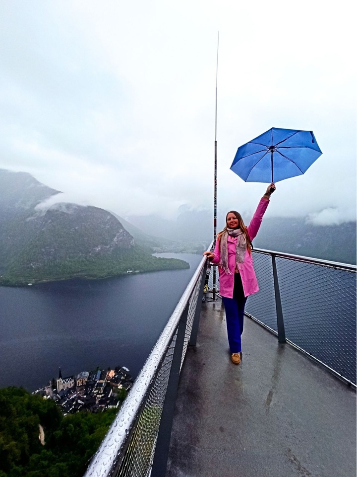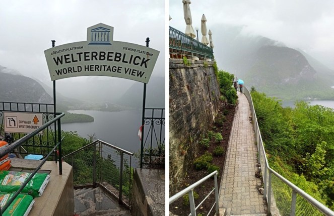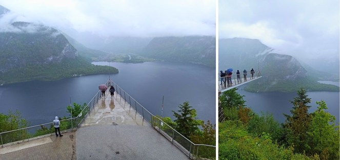 Nad Hallstatt na wysokości 360 metrów znajduje się platforma widokowa. Mozna sie do niej dostać na dwa sposoby: dojechać kolejką (40 euro) lub wejść pieszo po schodach z centrum miasta (około 45 minut). Platforma ta jest skonstruowana w kształcie trójkąta i wyprowadza oglądających daleko poza krawędź zbocza. Widoki są zapierające dech, nawet podczas deszczu i z mgłą roztaczającą się nad miasteczkiem i jeziorem. Patrząc w dół widzimy Hallstatt z lotu ptaka, wyraźnie widać jakie małe jest to miasteczko. Wieża neogotyckiego kościoła ewangelickiego ładnie wybija się ponad resztę budynków. Można tu do woli zachwycać się panoramą wpisanego na Listę Światowego Dziedzictwa UNESCO regionu Hallstatt Dachstein Salzkammergut.