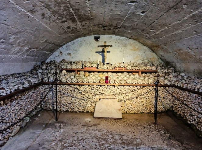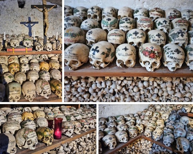 To jednocześnie piękne i makabryczne miejsce. Głownie dlatego, że znajduje się tam ponad 1200 czaszek i kości ludzi, którzy zmarli wieki temu. Jednak nie to najbardziej rzuca się w oczy, a  niezwykłe ornamenty namalowane na czaszkach. Kobiece ozdobione zostały kwiatami róży i bluszczu na znak miłości i życia. Męskie zaś udekorowano liśćmi dębu i lauru, które oznaczają  symbol zwycięstwa i męstwa. Są też daty – urodzenia i śmierci, a czasem pojawiają się także niewielkie krzyżyki. Kaplica została wybudowana w XII wieku, jednak nie od początku umieszczano w niej zmarłych. Najstarsze kości trafiły w XVIII wieku, z przyczyn praktycznych, ponieważ zaczęło brakować miejsca na cmentarzu. Dlatego po ok. 15-20 lat od pochówku ekshumowano ciało i składano je w kaplicy, wtedy właśnie rodzina na znak pamięci ozdabiała czaszki. Ostatnia osoba umieszczona została w kaplicy w 1995 roku (zmarła w 1983 roku). Aktualnie zmarli są skremowani, a ich urny umieszcza się na cmentarzu. Cena za wstęp do kaplicy to 2 euro.
