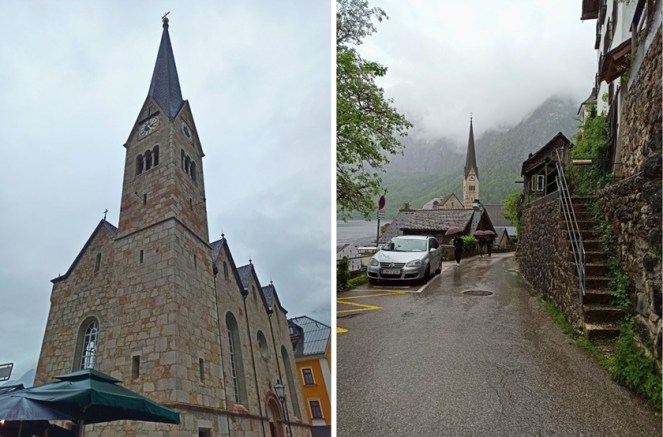 Ten słynny gotycki kościół ze strzelista wieżą, który widć niemal z każdego miejsca w miasteczku. Swoista ikona Hallstatt. Został zbudowany w 1785 roku jako dom modlitw. Obok kościoła znajduje się przystań statków, skąd odpływają rejsy wycieczkowe po jeziorze.