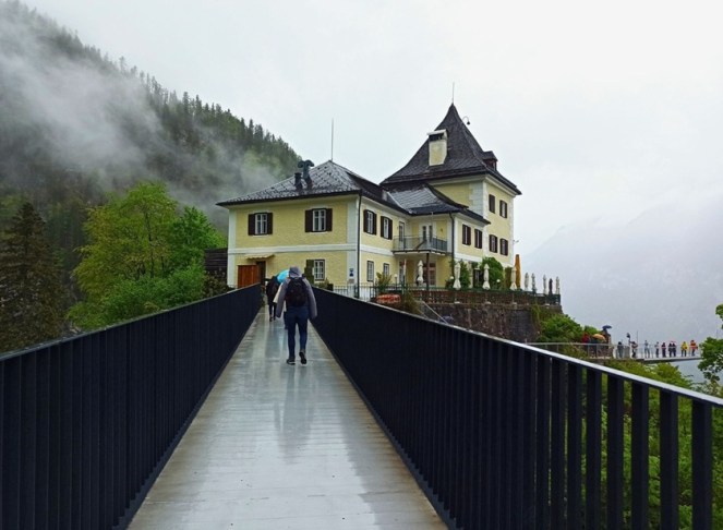 Na samym końcu głównej ulicy dotrzemy do kolejnego w miasteczku punktu widokowego. Nie jest to bylejaki punkt widokowy, ale raczej TEN punkt widokowy, gdzie możemy sfotografować “klasyczny kadr”, którego charakterystycznym elementem jest neogotycki kościół ze smukłą wieżą na tle jeziora i gór. Oczywiście musimy swoje odczekać w kolejce, bo przecież każdy chce mieć pamiątkowe zdjęcie z pocztówkowym miejscem nie tylko w Hallstatt, ale i całej Austrii.