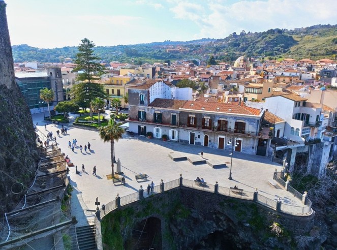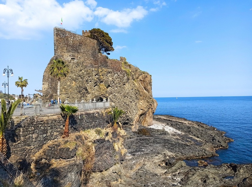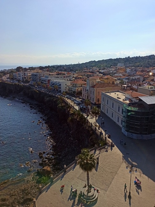 A tych tutaj nie brakuje. Praktycznie z każdej strony możemy podziwiać ten kawałek Sycylii. Z jednej strony popatrzymy na promenadę prowadząca do zamku, z drugiej mamy widok na morze i Riwierę Cyklopów, a jeszcze z innej – na samo miasteczko.