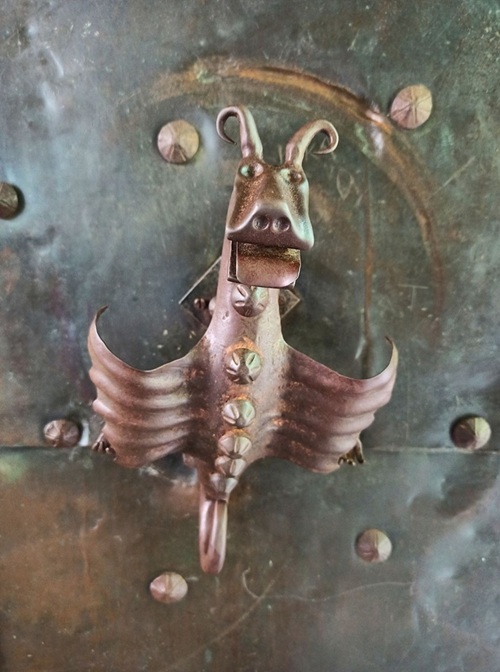 I wreszcie na sam koniec wycieczki po zamku, możemy „spotkać się” z Nosferatu. Jak wspomniałam na początku, na tym właśnie zamku w latach 1921-1922 roku powstał film „Nosferatu – symfonia grozy”. Podobno główny bohater wcielający się w wampira nie był specjalnie charakteryzowany, on po prostu był tak brzydki 🙂 W szklanej gablocie znajduje się postać wampira i można sobie z nim zrobić selfika 🙂
