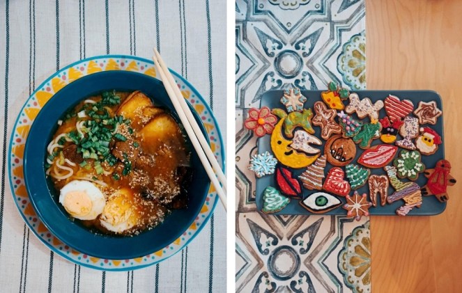 Serio. Jednak jestem zbyt leniwa, żeby to robić codziennie, bądź regularnie. Nie mniej jednak lubię pichcić, zwłaszcza dla kogoś. Sobie też czasem dogadzam, a co! Mam w zanadrzu kilka popisowych dań, które wśród moich znajomych cieszą się uznaniem. A przynajmniej tak mówią. Nadal żyją, więc zakładam, że moje dania są zjadliwe 😀 A tak na poważnie, to całkiem nieźle gotuję. Ostatnio złapałam fazę na pieczenie i dekorowanie pierniczków. Tak mi się spodobało, ze ostatnio zrobiłam jedną partię 🙂 To takie wyzwalające i odstresujące, żałuję, że wcześniej nie zaczęłam tego robić! Dodatkowo od jakiegoś czasu eksperymentuję kulinarnie z ramenem, próbuję znaleźć na niego przepis doskonały. Wkrótce mi się to uda, wierzę w to mocno 😀