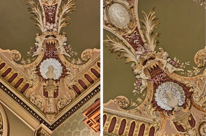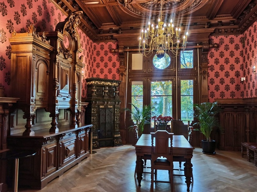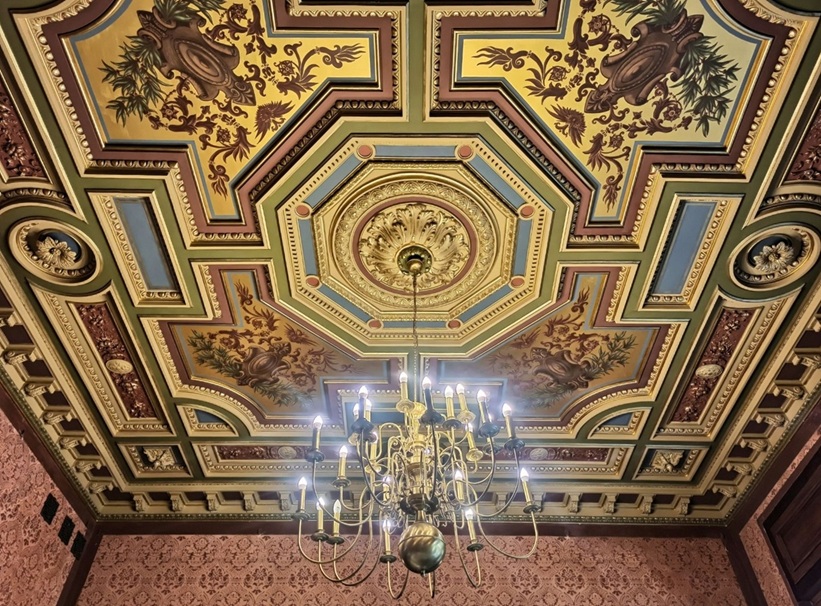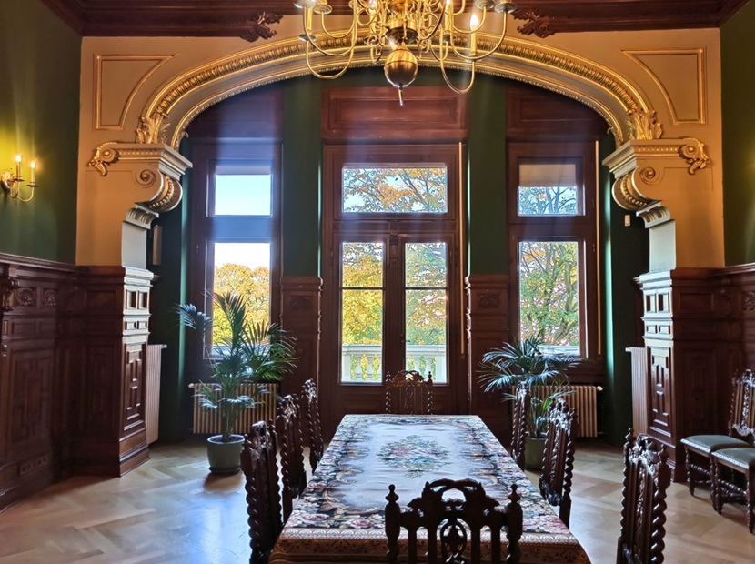 W trakcie ostatniej renowacji odtworzony został każdy detal, uzupełniono najmniejsze ubytki. Obicie tekstylne ścian w jadalni i tzw. bawialni jest zrekonstruowane. W jadalni z kredensem został znaleziony kawałek tkaniny wyprodukowanej przez szczeciński zakład Toepffera w XIX wieku. W bawialni też zostały odtworzone tkaniny. Ich kolor został dopasowany do stropu, któremu przywrócono pierwotną kolorystykę. W bawialni znajduje się wykusz, w którym znajdowały się rośliny, coś na wzór ogrodu zimowego. Odtworzone zostały także bardzo efektowne żyrandole. Zostały dobrane witraże. Na nowo zaprojektowane, ponieważ te pierwotne nie przetrwały. Znajdują się na klatce schodowej i w dawnej łazience, czyli w pokoju mauretańskim. Oprócz tego odkryto fantastyczną dekorację malarską na stropie w pokoju gościnnym na piętrze.