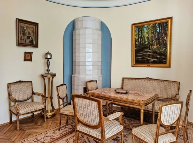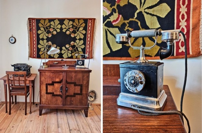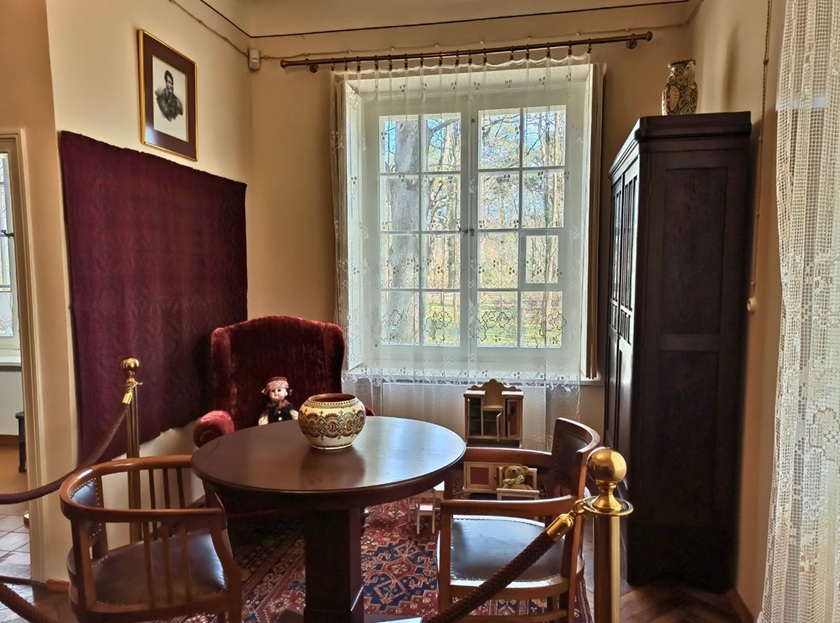 Niestety praktycznie wszystkie eksponaty nie są oryginałami, a wiernymi kopiami, które powstały na specjalne zamówienie. Wzorowano się zachowanymi fotografiami. Jedynie kilka rzeczy stanowią oryginalne pamiątki po mieszkańcach dworku. Oryginalne rzeczy znajdują się w salonie, np. lampy zrobione z pocisków. Od 1956 do 2004 roku w dworku mieściło się przedszkole. Dzięki temu budynek przetrwał w całkiem niezłym stanie.