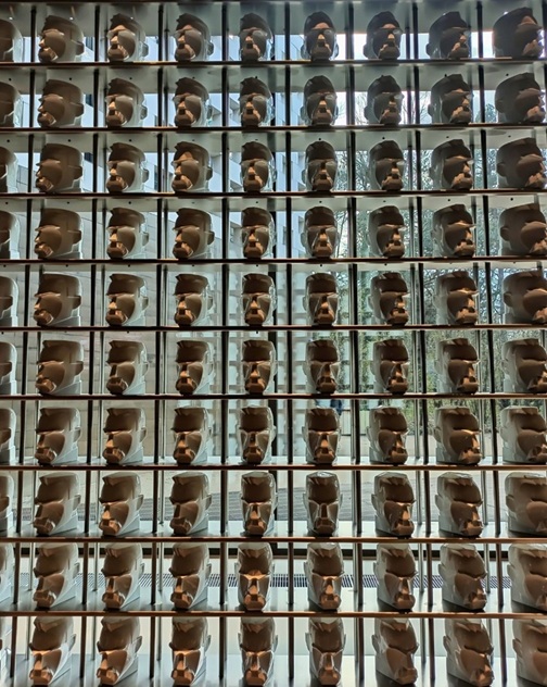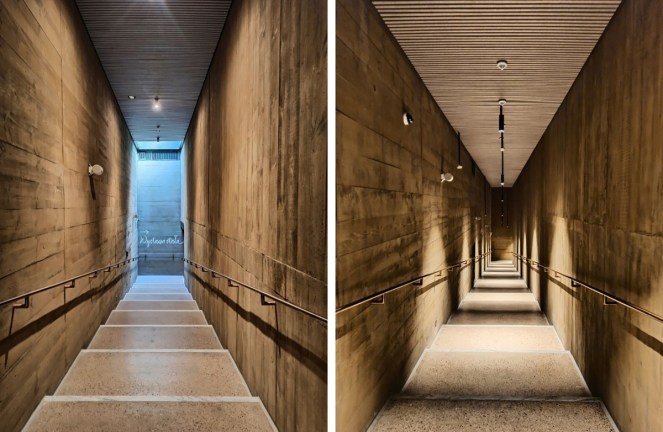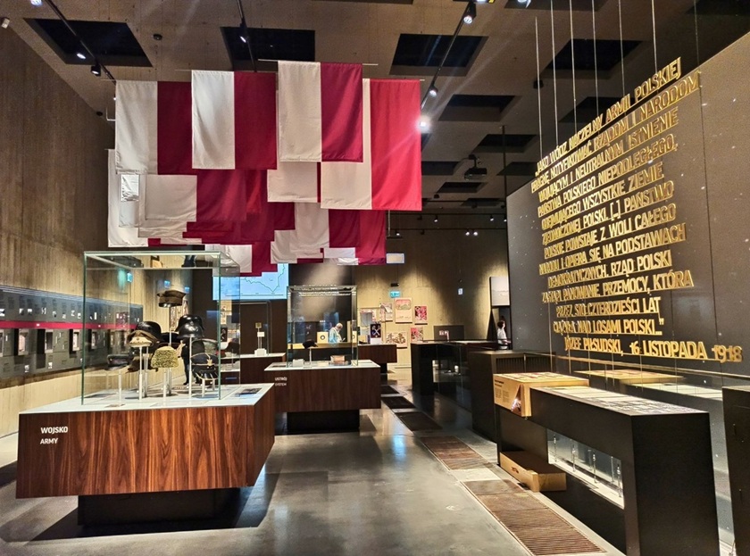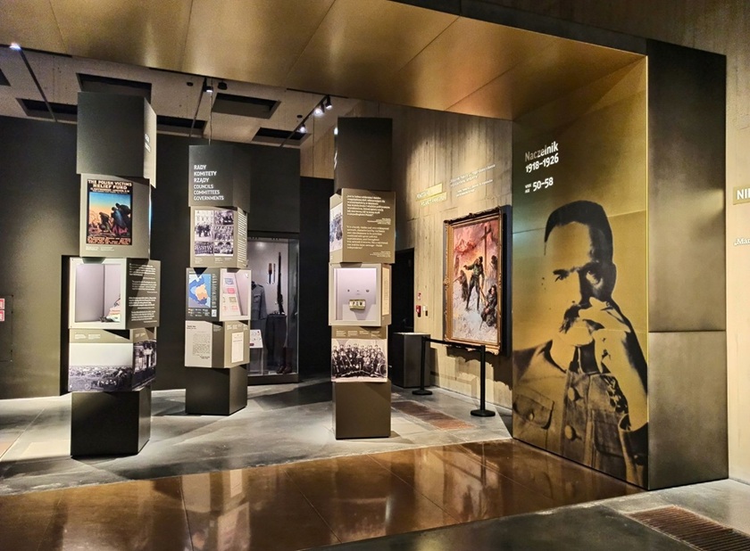 Zwiedzanie zaczynamy nietypowo, bo schodzimy tajemniczymi schodami w dół. Początkowo niepewnie i lekką nutką dezorientacji czy dobrze idę, zeszłam na dół. Miałam wrażenie, że jakimś cudem znalazłam się we wnętrzu piramidy (potem okazało się, że właśnie to piramida była inspiracja dla projektanta). Ekspozycja mieści się w podziemnej hali na dwóch poziomach. Piętra łączy przestrzeń centralna, w której można odpocząć i na monumentalnych ekranach obejrzeć multimedialny pokaz dopełniający treść wystawy. Na wystawie pierwszoplanową rolę odgrywają eksponaty, przekaz historyczny uzupełniają infografiki oraz prezentacje multimedialne i dźwiękowe. Warto wiedzieć, że wystawę stałą nagrodzono wieloma prestiżowymi wyróżnieniami. W 41. edycji konkursu Sybilla zwyciężyła w kategorii Nowe i zmodernizowane wystawy stałe oraz Grand Prix. Wystawa otrzymała także nagrody i wyróżnienia Red Dot Design Award 2021, GOLD MUSE! MUSE Design Awards, International Design Awards.