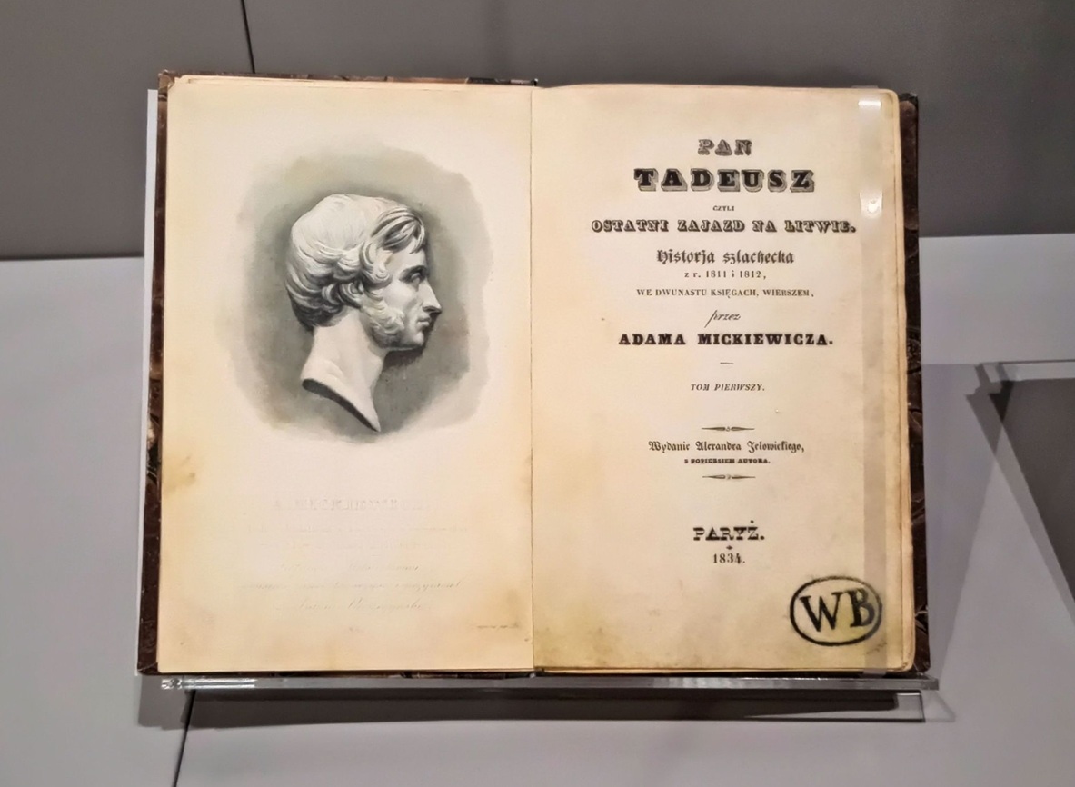 - oryginalny egzemplarz „Pana Tadeusza” Adama Mickiewicza z 1834 r.;