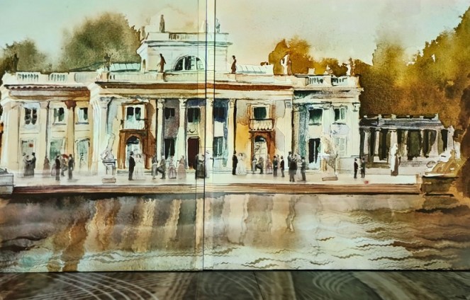 W kolejnych salach śledzimy podróż Chopina przez Warszawę jego młodości, Wiedeń pełen niepewności oraz Paryż – miejsce jego największych artystycznych sukcesów i osobistych uniesień. Warstwa wizualna opiera się na starannie wyselekcjonowanych materiałach: obrazach Canaletta, ilustracjach epoki, a także ponad 50 oryginalnych akwarelach autorstwa Beaty Musiał-Tomaszewskiej, które – malowane ręcznie – zostały ożywione w formie animacji poklatkowej.