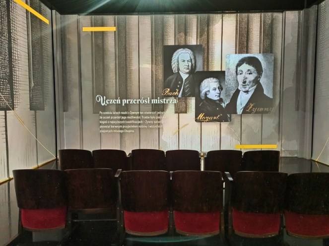 Wystawa prowadzi nas przez osiem tematycznych przestrzeni, a każda z nich opowiada inną część historii życia i twórczości największego polskiego kompozytora. Rozpoczyna się w malowniczo zrekonstruowanym dworze w Żelazowej Woli, gdzie poznajemy miejsce narodzin Chopina. Obok makiety jego rodzinnego domu pojawia się dynamiczna mapa zmieniających się granic Polski.