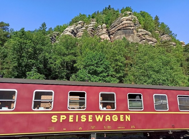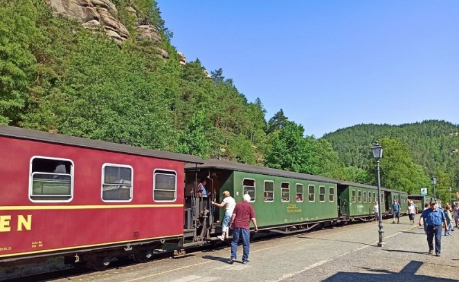 Moja podróż rozpoczęła się w Zgorzelcu. Na początek musiałam dotrzeć na stację kolejową do Goerlitz. Następnie złapałam pociąg jadący do Żytawy (Zittau) – odjeżdżają mniej więcej co godzinę. Po dotarciu do Żytawy mamy dwie opcje, żeby dostać się do miejscowości Kurort Oybin: autobus nr 16 (kilka w ciągu dnia) albo old schoolową Żytawską Kolejką Wąskotorową. Ja wsiadłam w kolejkę, bo odjeżdżała wcześniej niż autobus. Poza tym, jak mogłabym odpuścić sobie przyjemność przejechania się kultową Żytawską Kolejką Wąskotorową? 🙂