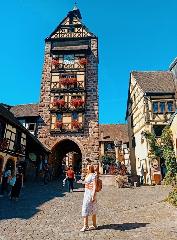 Riquewihr to jedno z najbardziej urokliwych miasteczek Alzacji — niemal jak żywcem wyjęte z pocztówki. Miasteczko jest członkiem Les Plus Beaux Villages de France („Najpiękniejsze Wioski Francji”) – co podkreśla jego wyjątkowość i dobrze zachowaną architekturę. Cechą charakterystyczną jest wieża obronna/brama z 1291 r., która była częścią murów miejskich. Znajduje się na jednej z głównych bram wejściowych do miasta. Riquewihr jest bardzo malowniczy o każdej porze roku, ale szczególnie piękny w wiosnę i lato, kiedy kwiaty zdobią balkony i okna. Riquewihr to jedna z atrakcyjnych perełek Szlaku Winnego, więc przy słonecznej pogodzie i w sezonie trzeba liczyć na tłumy, ale nia ma co się dziwić. Nad miasteczkiem znajdują się liczne winnice leżące na stokach, co pozwala na piękne widoki z miasta na dolinę i Równinę Renu.