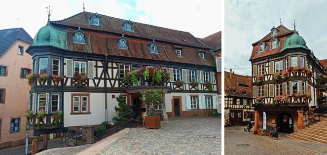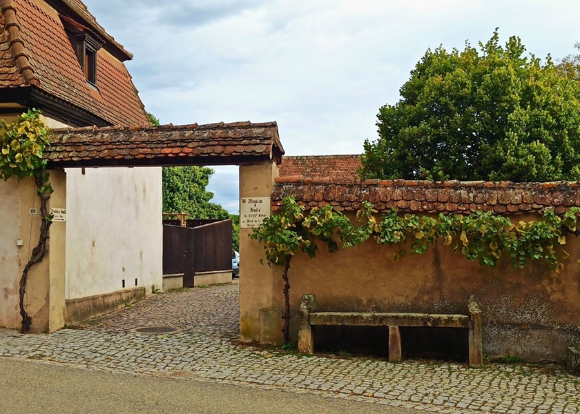 To jedno z mniej znanych miejsc w Alzacji, które potrafią zachwycić ciszą, winem i architekturą. To zupełnie inne alzackie miasteczko, ale równie urzekające. Mittelbergheim nie ma tradycyjnych domów szachulcowych (fachwerk). Zamiast tego dominują budynki z różowego/łososiowego piaskowca (przyrodniczo łososiowy kamień) oraz budowle w stylu renesansowym, często z dużymi dziedzińcami. Brak tu krzykliwych kolorów czy ozdób, zamiast tego naturalny kamień, proste fasady, harmonia z okolicą. Miałam wrażenie, że przeniosłam się do angielskiego miasteczka. Mittelbergheim jest jedyną wioską w Alzacji, która ma status Grand Cru dla szczepu Sylvaner dzięki Zotzenbergowi, co czyni to miejsce wyjątkowym. Ciekawostką jest, że Czesław Miłosz przebywał w miasteczku jesienią 1951 roku. Poeta napisał wiersz zatytułowany „Mittelbergheim”, dedykowany Stanisławowi Vincenzowi. Wiersz ten znalazł się m.in. w wydaniu „Kultura” w 1952 r. W 2014 roku, z inicjatywy m.in. polskiego dyplomaty przy Radzie Europy, w Mittelbergheim odsłonięto tablicę upamiętniającą pobyt Miłosza i jego wiersz.